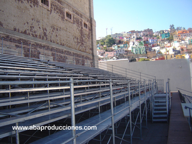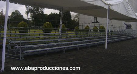 Somos especialistas en Gradas para todo tipo de eventos en la Republica Mexicana, pero manejamos también todo tipo de muebles auxiliares para tu evento, vallas, carpas, templetes etc. hasta sillas, butacas, unifilas, etc.